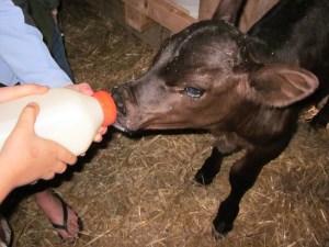 There are two baby steers in the pasture that have just learned to eat grass. Up to now, they’d rather suck- fingers, pant legs, each other’s ears. A dairy farmer friend gave them to us when they still had their umbilical cords dangling from their abdomens- the age they’re sent to auction. We purchased two months of milk replacer, bottle-fed them, taught them to drink from a bucket, and eat grain from our hand. Without a mother to watch, it took them awhile to figure out the grass step.