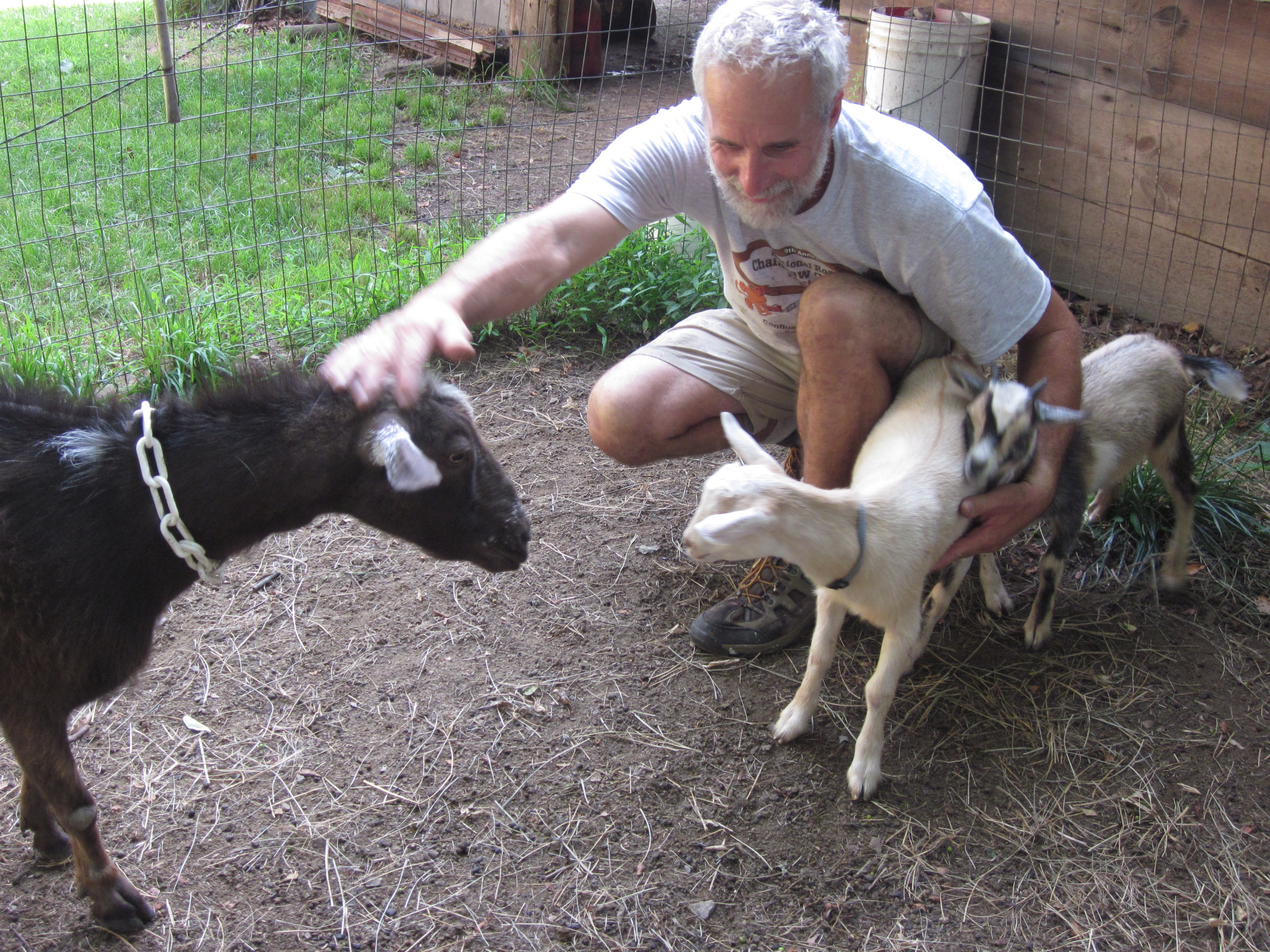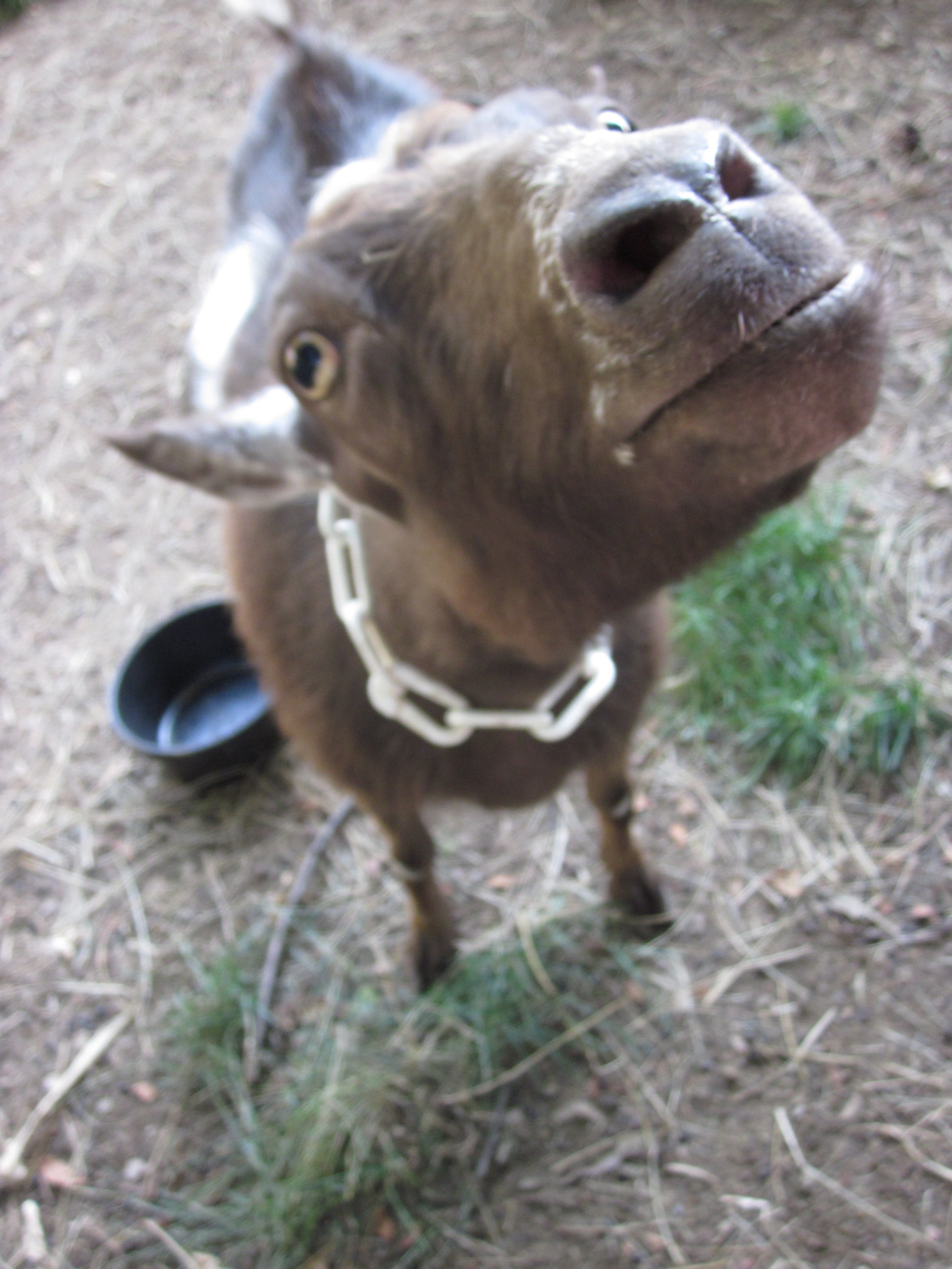 Now those of you that know us well know that we have a boy, Leo, the very best goat on the planet, who has tremendous personality and goes on hikes with us in the woods, up to three miles at a time and stays RIGHT with us, never chases a deer like a dog would. But when Todd said recently that Leo was getting old and may die in a few years, Bryce and I knew we needed to prepare for that day, and what better way than to bring in some young blood.