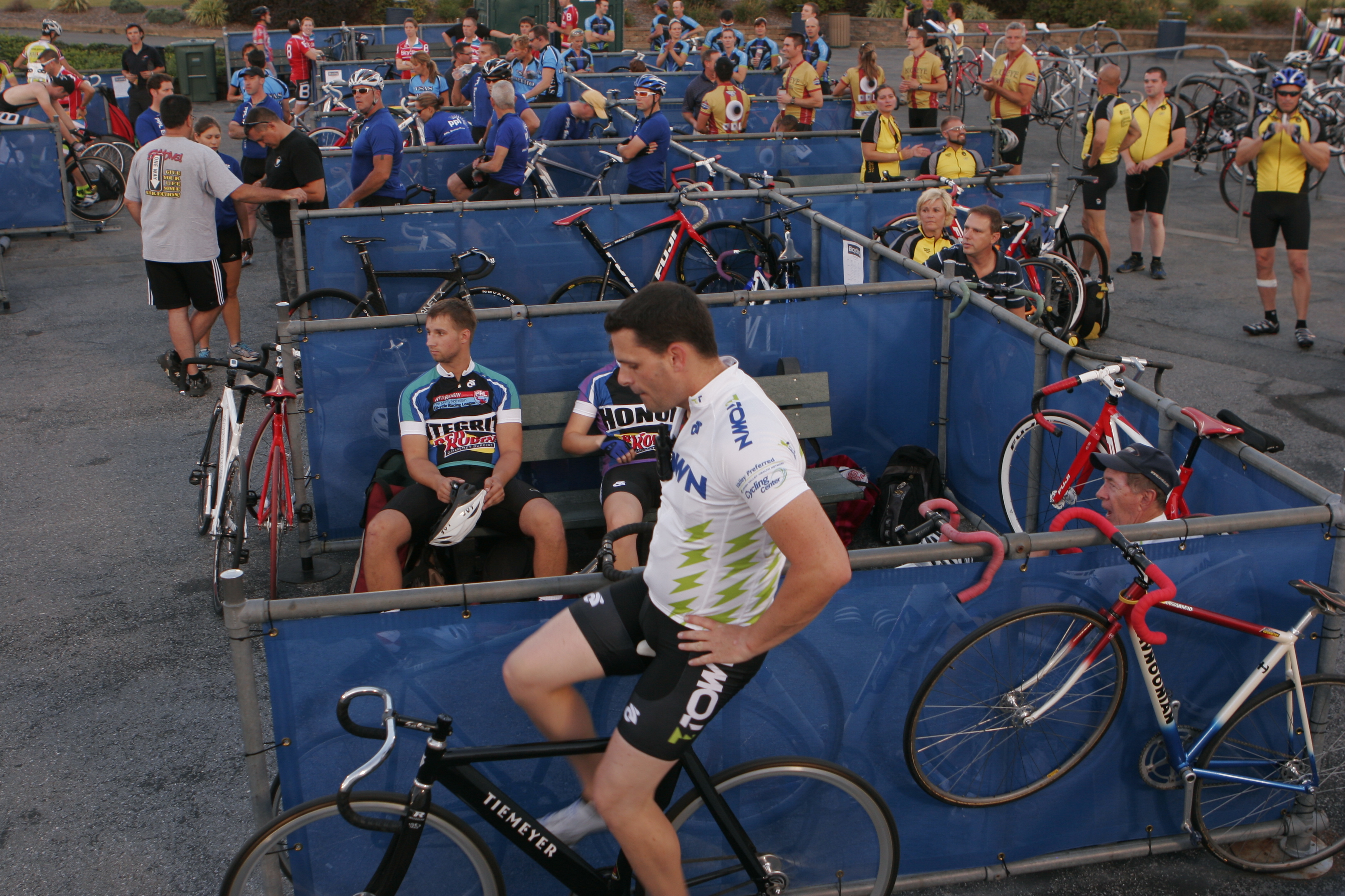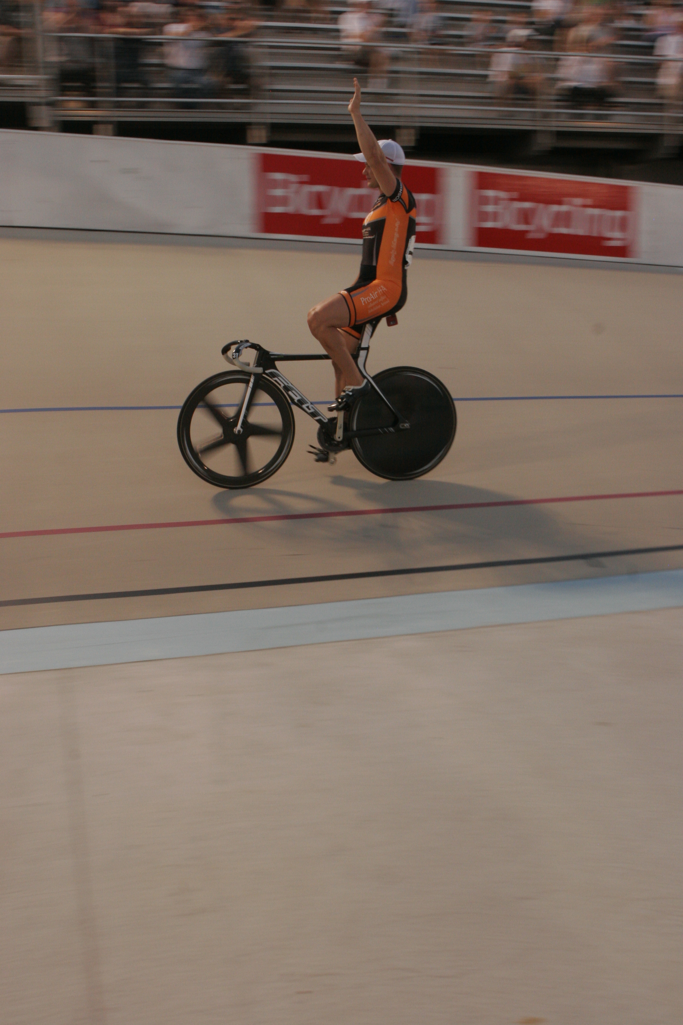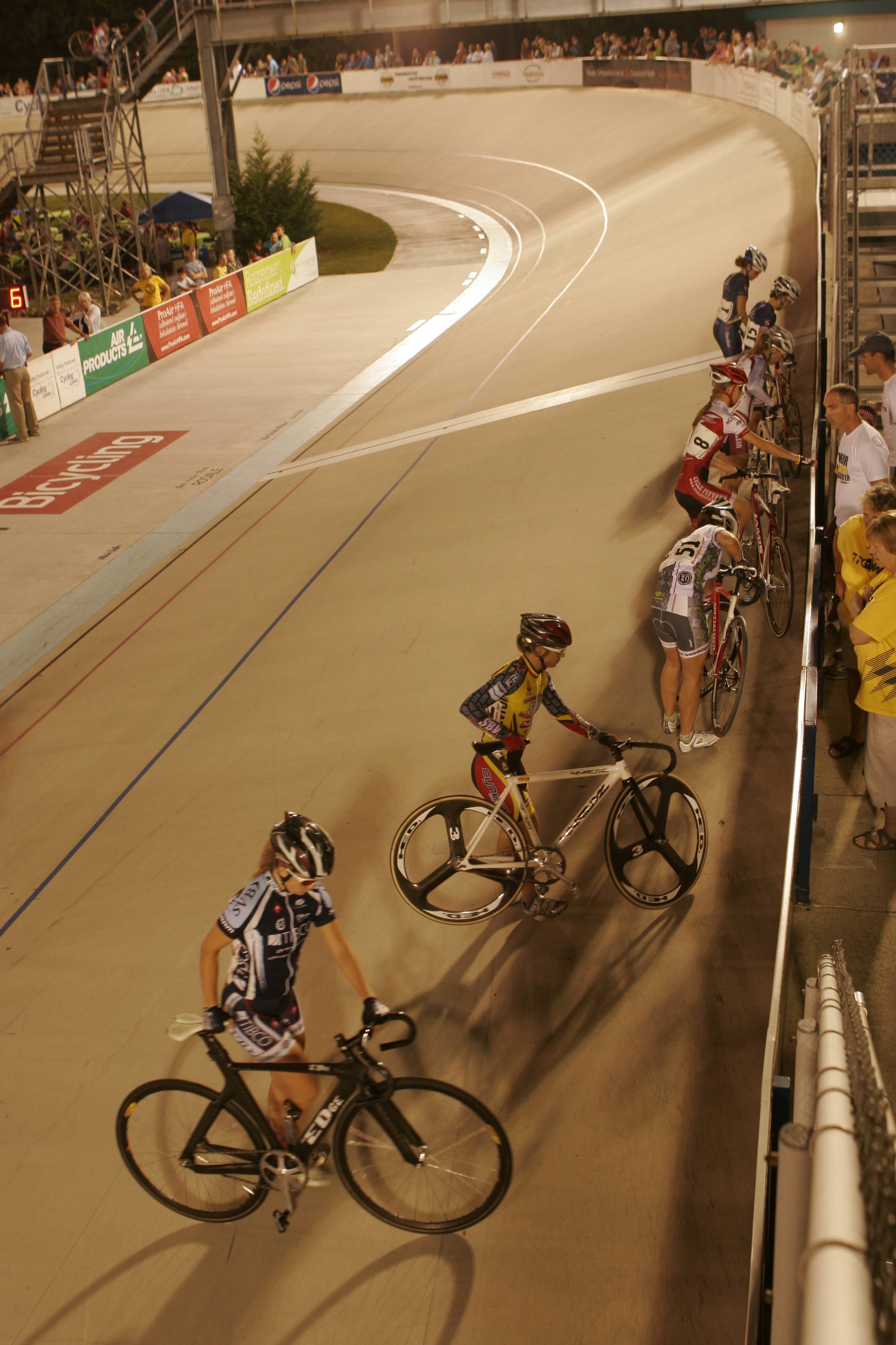Bryce and I ventured down into the racer’s pit at the Lehigh Valley Veledrome sporting our media badges- he with my big Canon camera around his neck, me poised with a stenographer’s notepad and pen, but we just gawked, like hicks in New York City. I just wanted to watch and look- at how they warmed up, at their bodies in spandex, at their muscular legs.