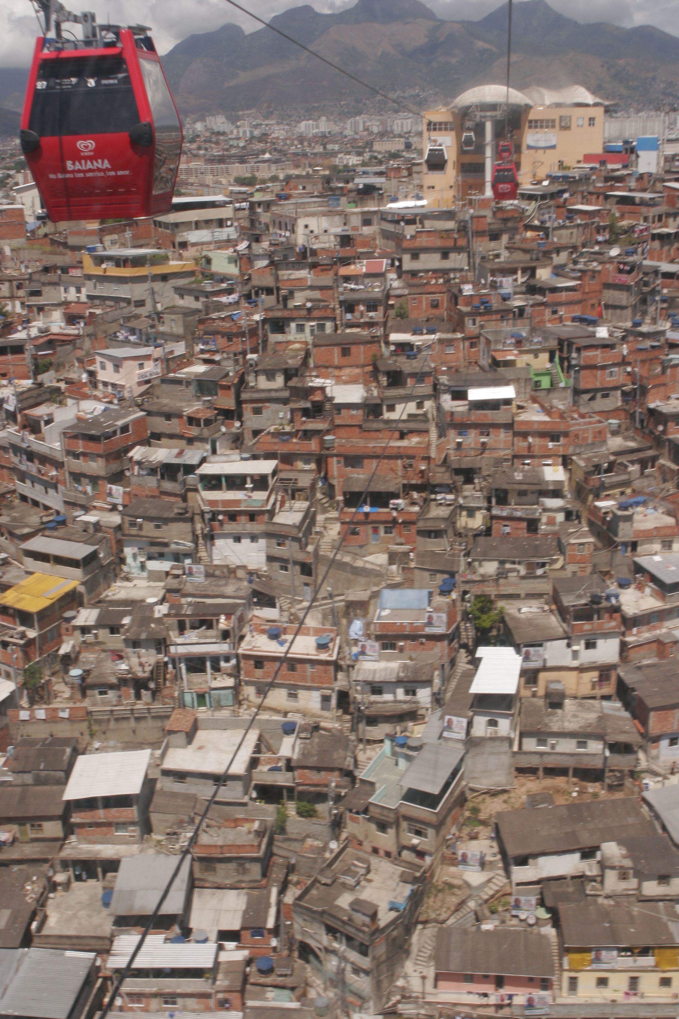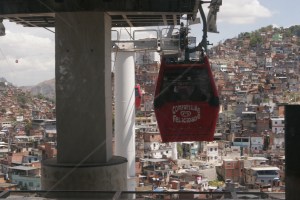 In the neighborhood of COMPLEXO do ALEMAO, I can now safely hop on a cable car and swing from favela hilltop to hilltop, gaining an intimate perspective into the backyards and lives of these Rio residents. This integrated system serves as a means of getting residents down to work at jobs,( a special car for locals provides two free trips a day), the children to schools, health care aid administered as well as a brand new tourist attraction.