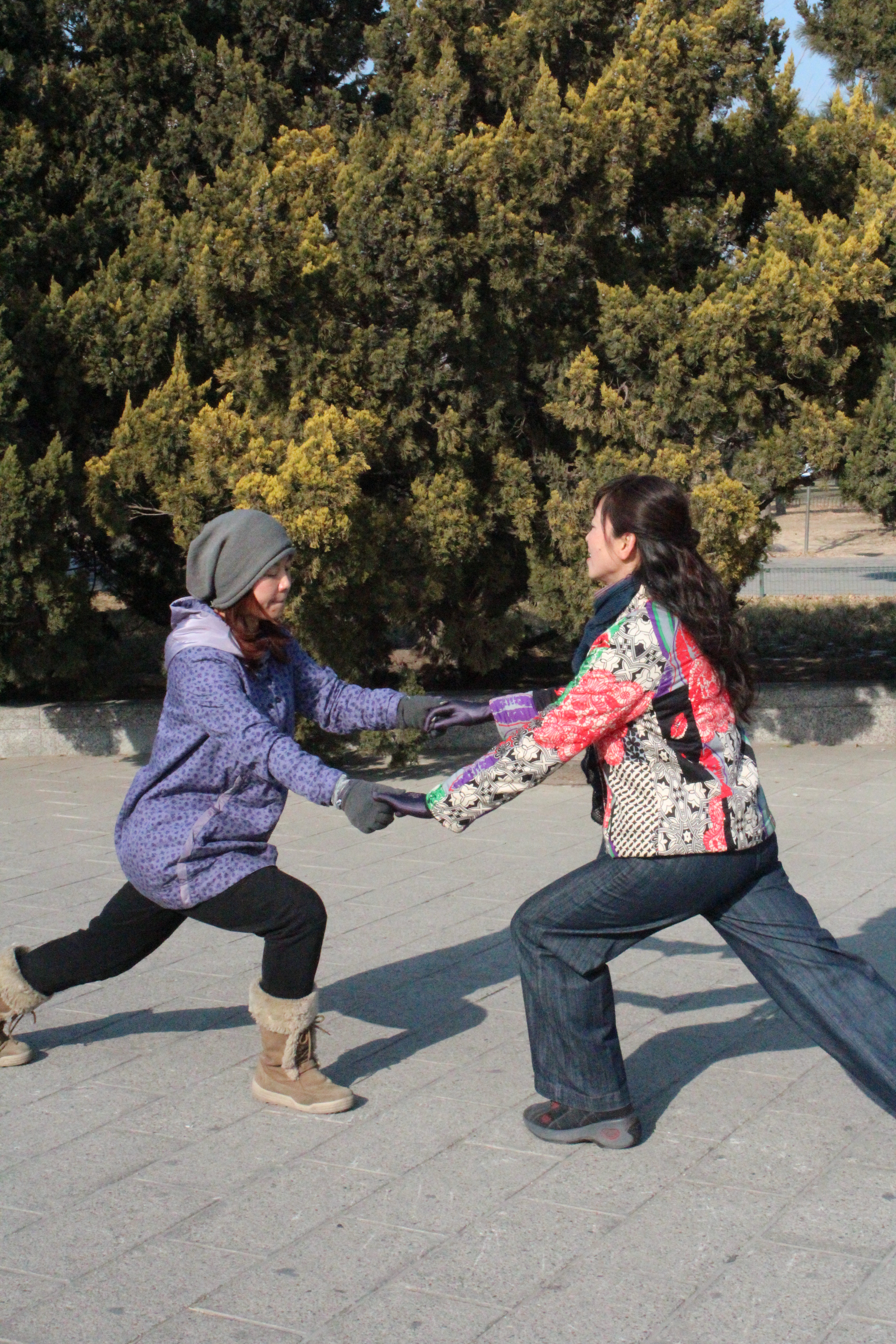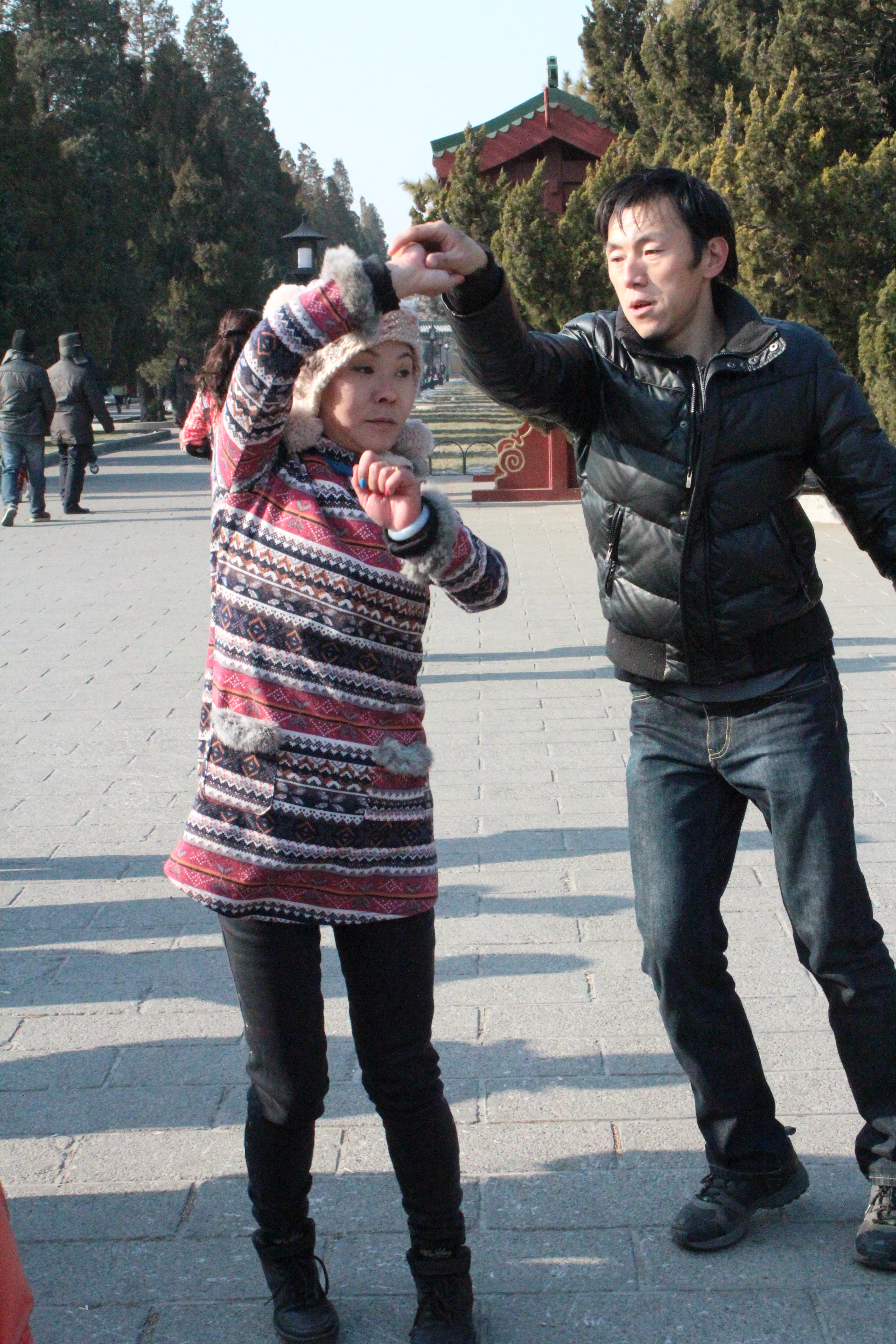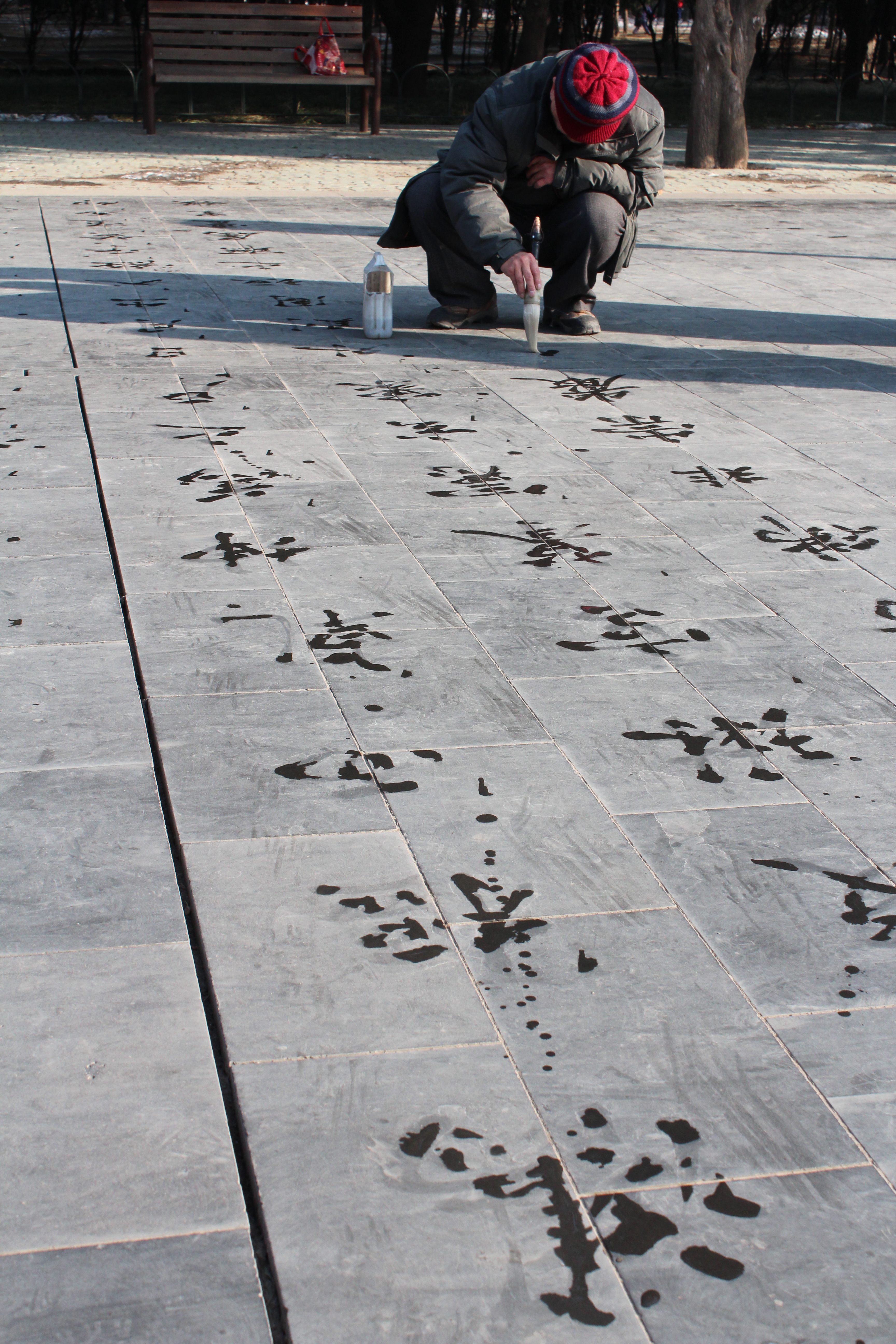 I suppose since the weather and temperature is the same inside and out, they do a lot of things outdoors. Ping pong is the game of choice at school “recess” and there are DOZENS of tables lined up in the school yards. There are groups of card games going on in the streets, women knitting, playing a matching ceramic tile game called Mahjong. We could be climbing a hill in a park and someone will be standing in the woods just singing their heart out, or doing tai chi or dancing with a long scarf to music or getting their inner ears “massaged” with a long flexible metal wire! (yikes!) or drawing Chinese characters with water and a large brush on the stone square as a way of mediation.