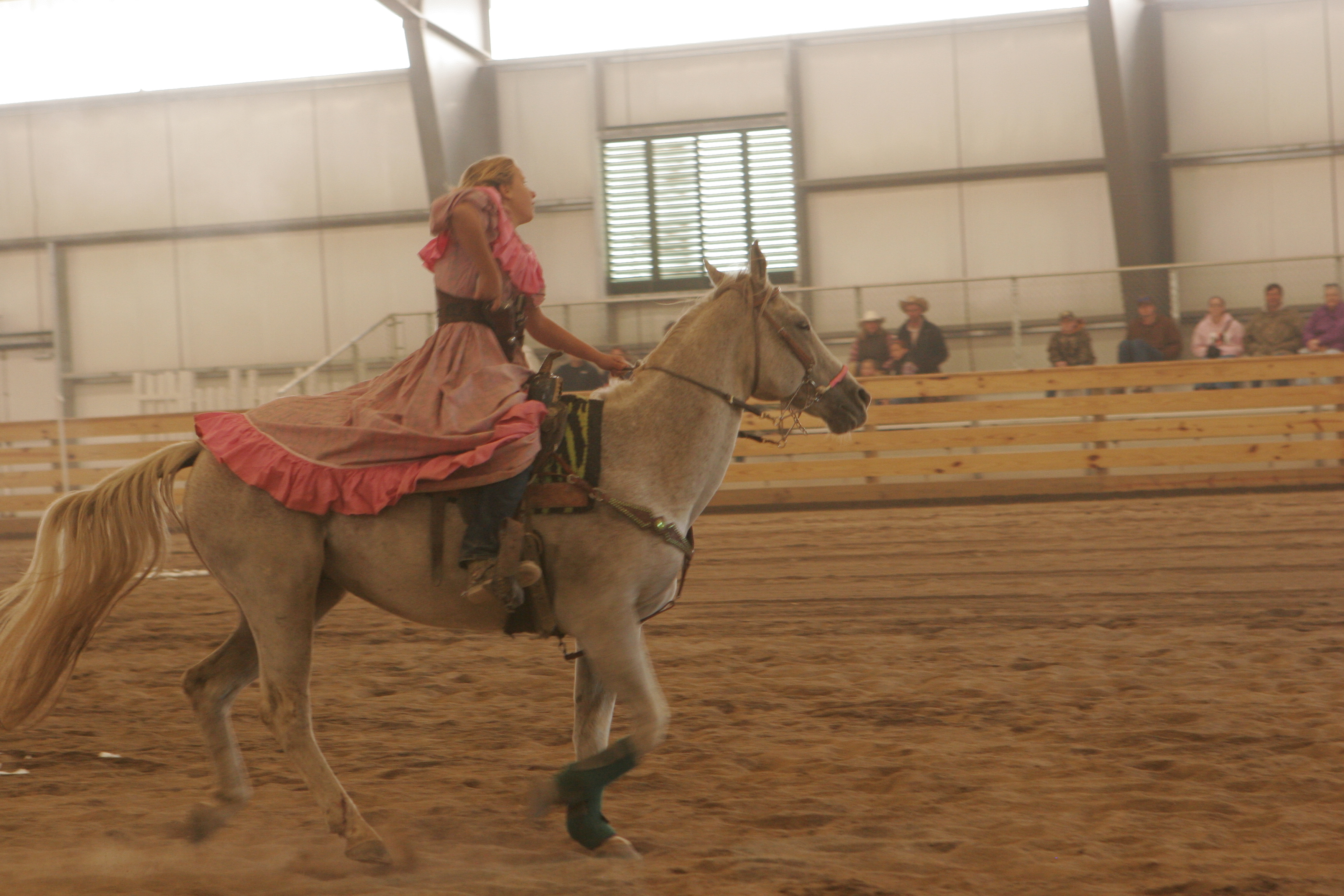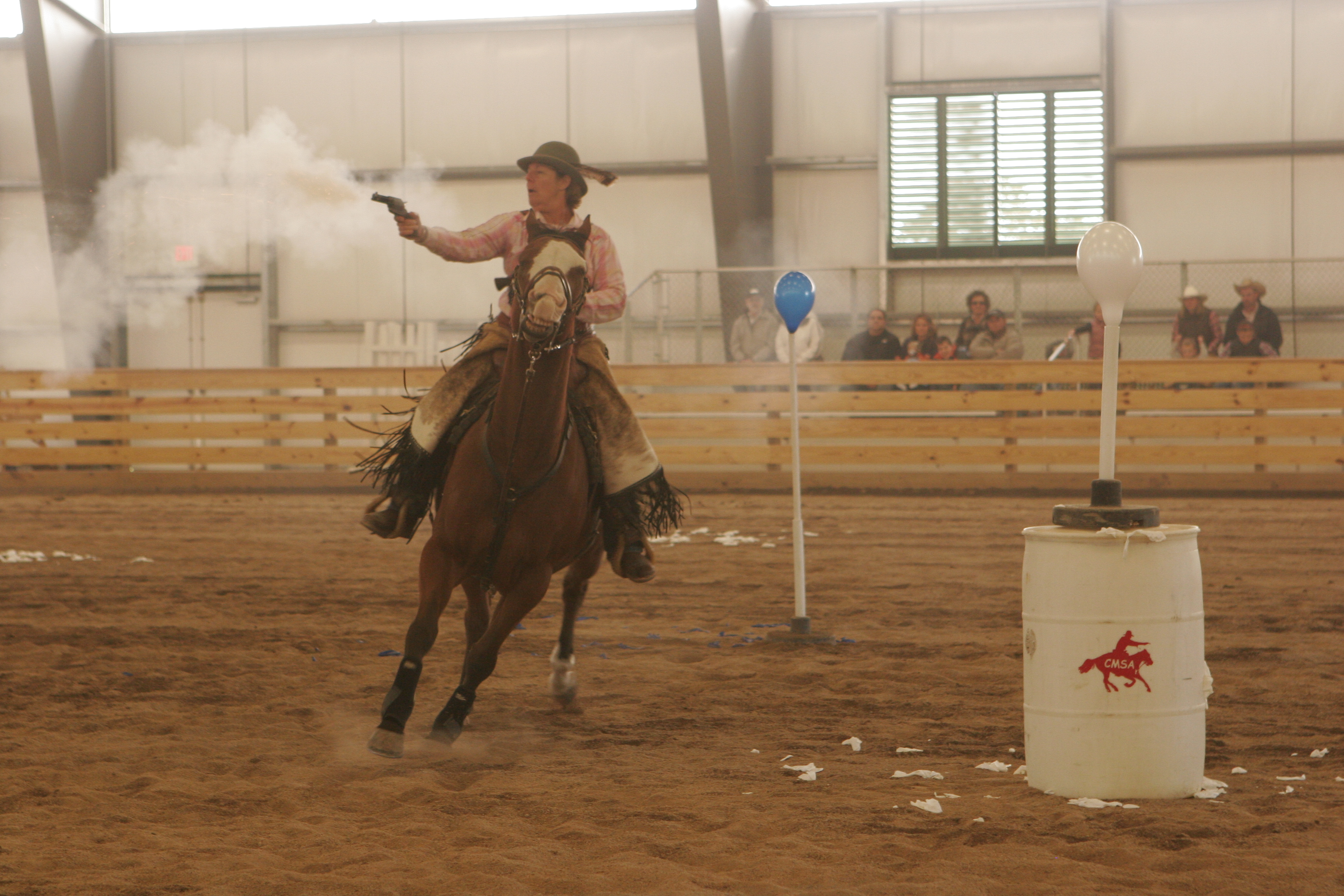 Part of that is because this fastest growing equine sport has a strict dress code. Period 1800’s western attire is only permitted during competitions. This national competitive sport involves riding a horse while you negotiate a course and shoot at balloon targets set up in varying patterns. Ammunition used is a casing filled only with coarse black powder. This is what bursts the balloons when aimed accurately. The burning powder exits the gun and travels a maximum distance of 25 feet, although, the ideal distance is eight feet.