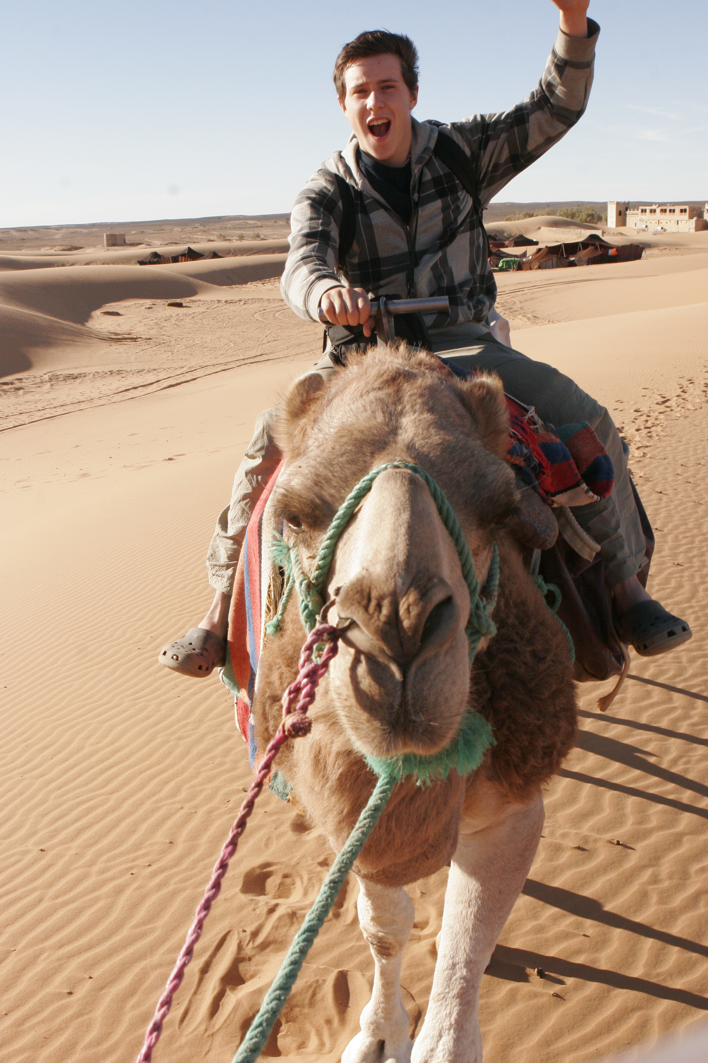 As you can see from Bryce’s account, the very first night in Morocco, was impacting. But the adventures never stopped from riding camels across pumpkin-colored sand dunes and sleeping out in a nomad tent, to visiting a village (Chefchaouen) where everything is painted blue including the ground and walkways through the village.