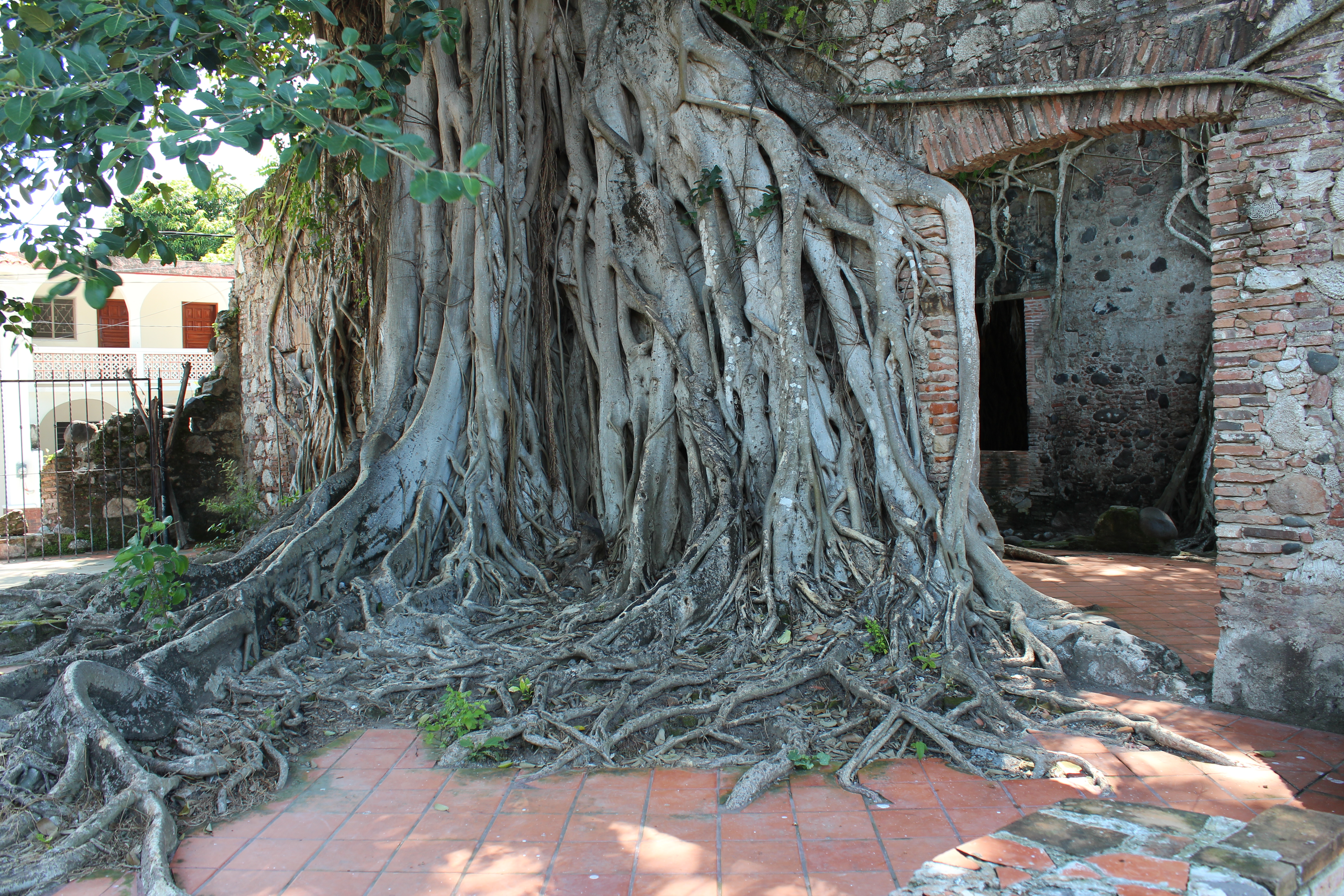 I find it interesting to note that this indigenous plant has been working hundreds of years to consume and destroy the home of Cortes, the brutal, mighty conquistador who nearly wiped out the indigenous people. This one solitary man led the conquest to defeat and conquer the Aztec Empire, just as and this one fig seed is attempting to consume his home today.