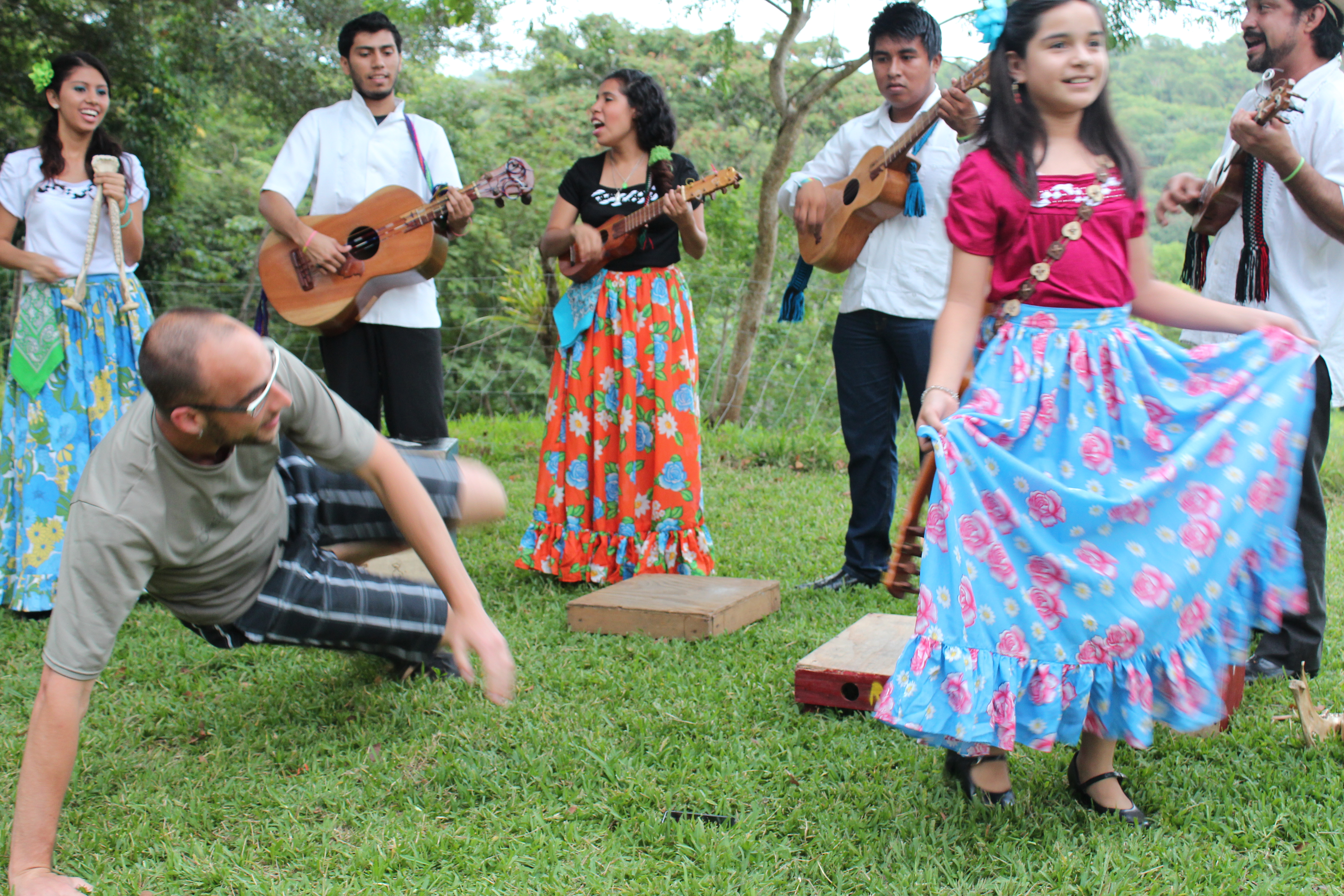 As we feasted, the Hernendez family brought in traditional local musicians (jarocho son music) who sang to us and played their little handmade Jarana (ukulele-type) guitars and sang songs of their history and their folklore; but also taught us to dance on little wooden platforms, where we mimicking one another and also do a courting dance where the men danced on all fours like an iguana. And we learned to play the horse and donkey jaw, which made a wonderful percussion sound when rattled and pounded.