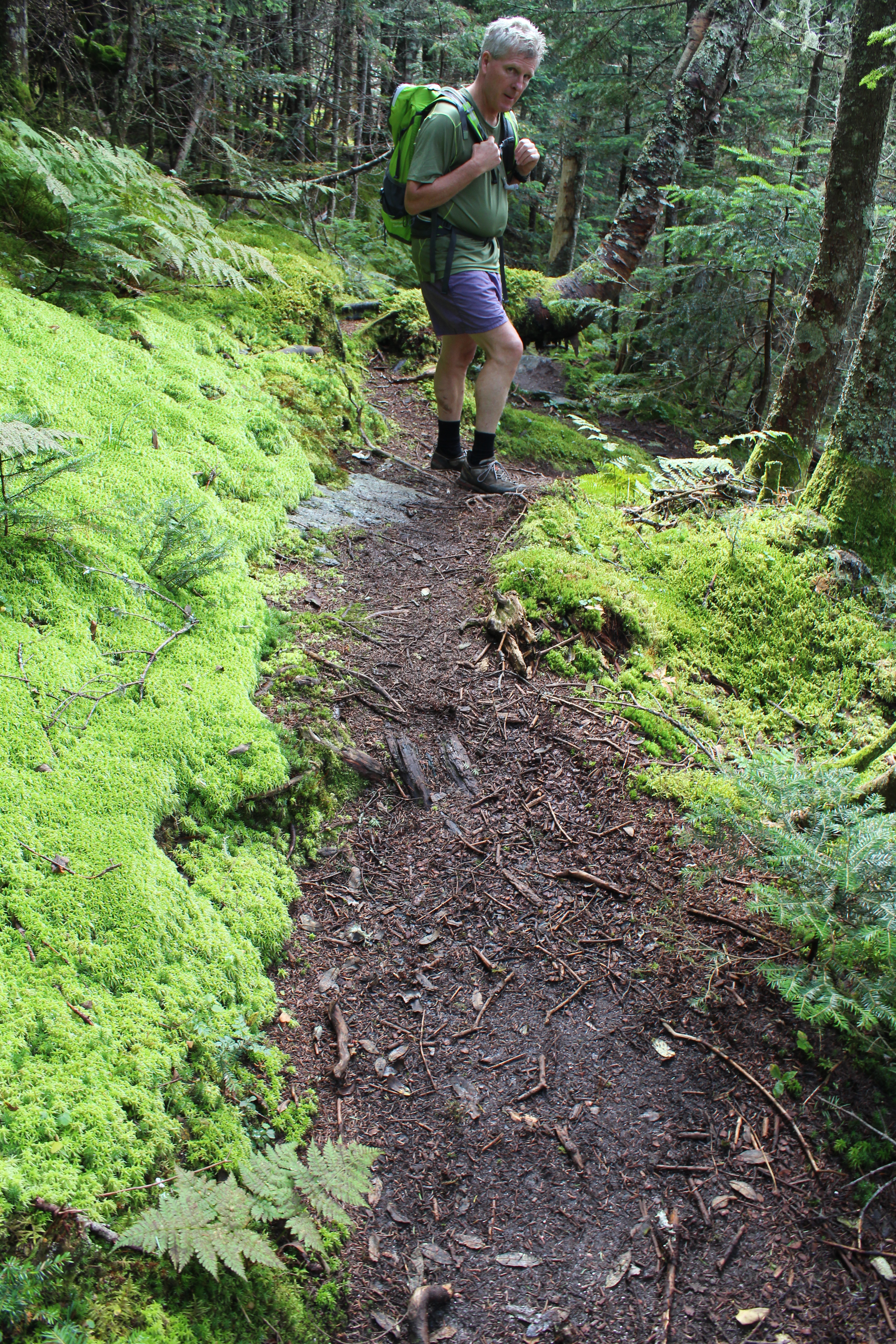 I have seen some moss in my day but nothing like what I found in Castle Ravine.  It is electric fluorescent green…almost unnatural, almost needing sunglasses. And it covers everything, like a scene out of the Pacific Northwest in the Olympic National Forest; even on the trail like a green carpet because this route sees little use as the guidebook states. But there was not a blow down in sight because the trails are kept in impeccable shape. It is worth the climb just to experience the moss.