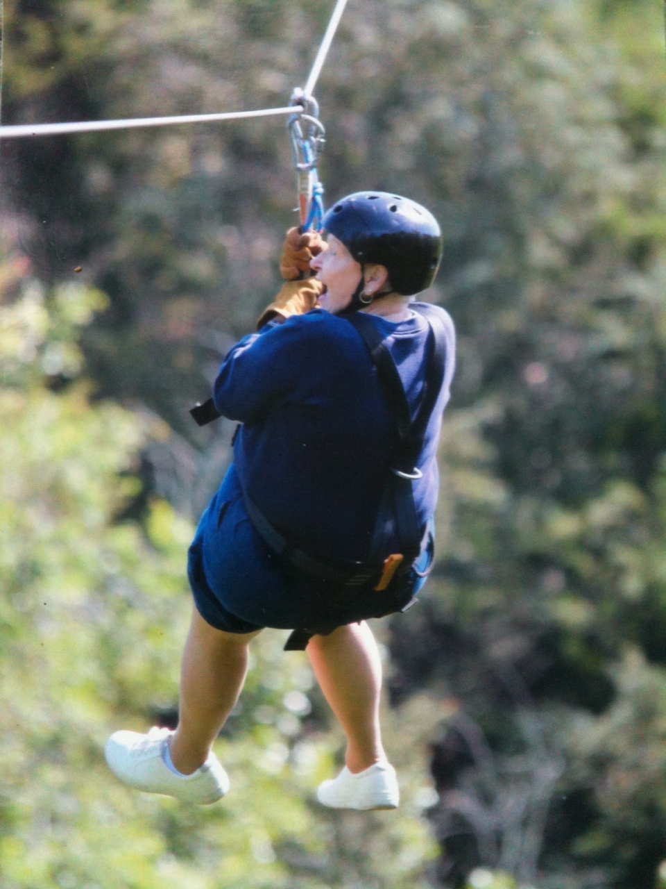 When her daughter, Linda announced that she was going sky diving, Dot said, “I’m in!” She loved it! She rolled out of that airplane attached to her jump master and was thrilled to death. Not scared a bit. That started it. A few years later, Linda announced, “I’m going zip lining,” Dot once again quickly chimed, “I’m in!”
