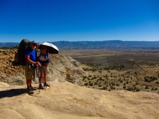Todd and I picked up where we left off in N NM last year, in the little trail town of Cuba. As luck would have it, temps were still up in the 80-90s, and because NM was in severe drought, the water sources were scarce, often dry, and far apart. I purchased a lightweight, reflective sun umbrella which we secured to my pack. It saved my life. I am susceptible to heat exhaustion and become very ill very quickly as I can’t seem to keep my body temperature low, especially with no water to dunk my head into nor soak my shirt.