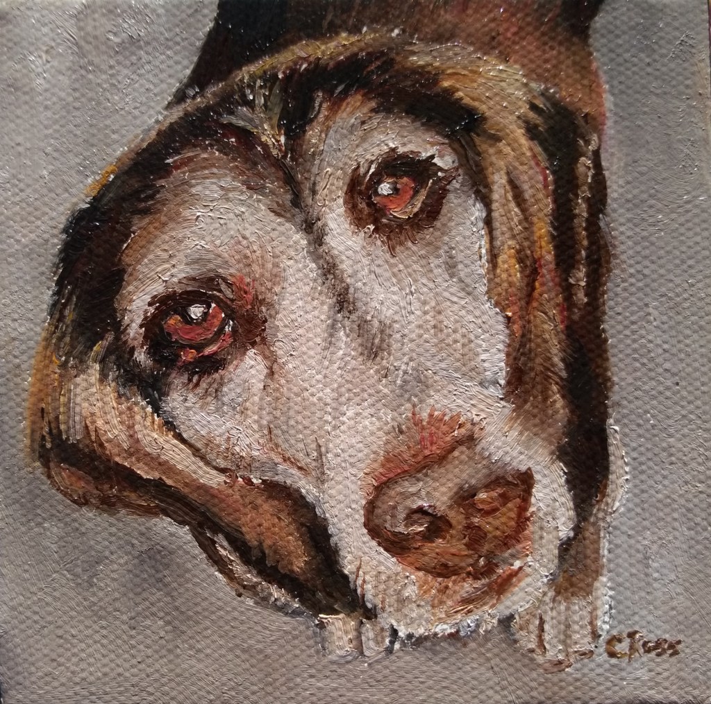 John recently shared with me that he has been in terrible pain and experienced great loss and loneliness since his beloved dog, George died. For twelve years, George and John were basically inseparable. Now that he has passed, John has fallen into a funk, not caring about daily walks, or even making himself go outdoors, for George had been his motivator. I quickly began to see that getting John out into nature again as one of my jobs as his friend- something that is easy for me as I go there myself on a daily basis. I also discovered a way that I might help alleviate some of his heart pain- make a little painting of his puppy dog that he could look at always.