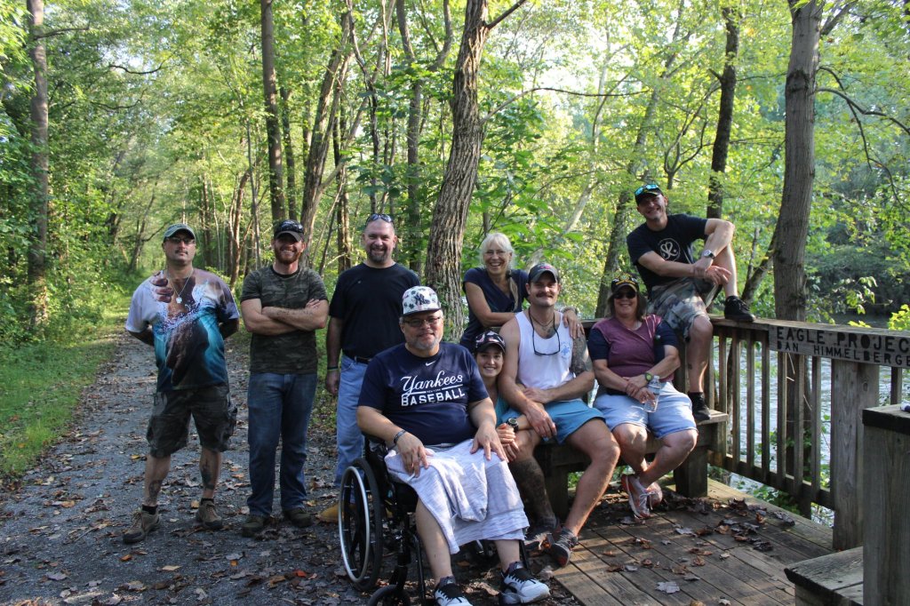 “Veteran Jason hiked the whole mile with a stick in his hand, whacking things and playing with it. I couldn’t help but smile. He was behaving like a free boy in the woods. I raised my son, Bryce outdoors, along with his sister Sierra, and so recognized the behavior immediately. Jason was one of twenty Veterans from the Lebanon VA Medical Center, enrolled in a rehab program and out for the day in the woods with River House PA. Jason would disappear over the steep side of the bank as we walked and we’d say, “Where’s Jason?” He was just wanting a better look at the river below, allowing his natural inquisitiveness dictate his actions and movement.”