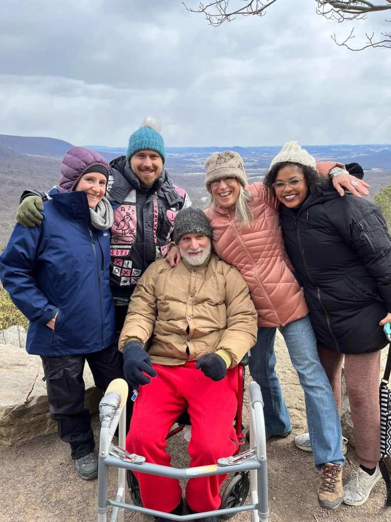 At the South Lookout, Ross insisted that therapists pose for a photograph with Gladfelter, who was seated on an Ice Age boulder overlooking farmland cultivated by Pennsylvania Dutch families for generations.