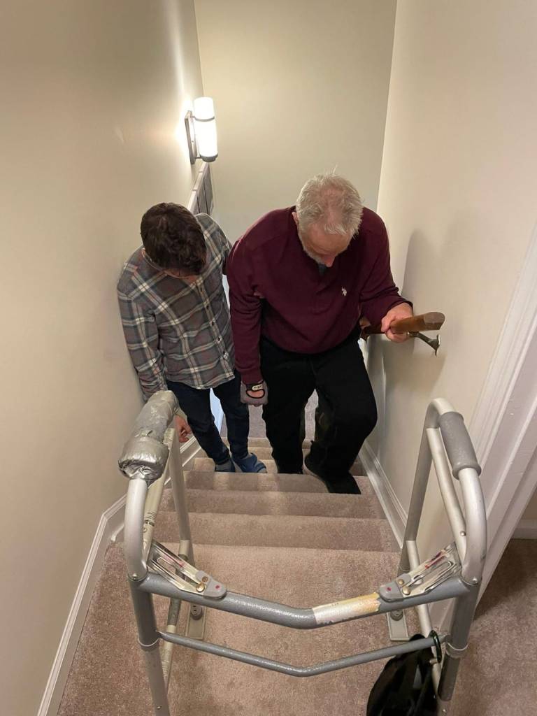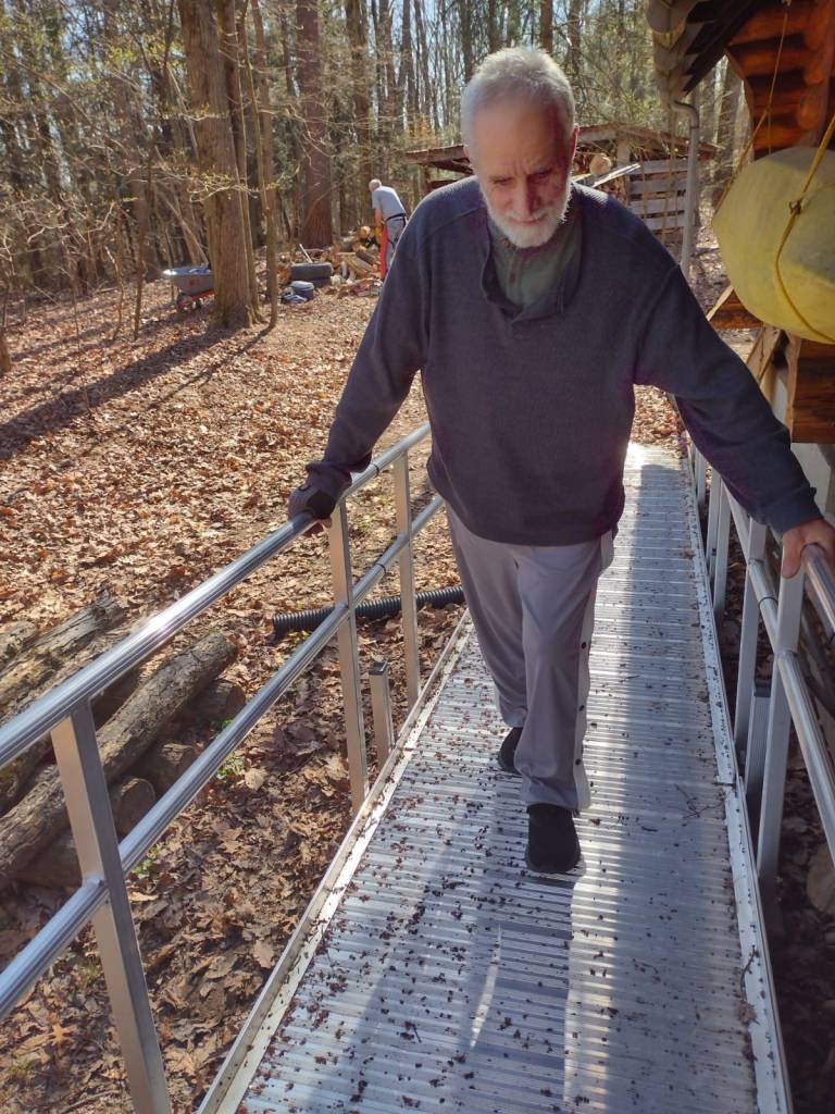 Todd walks everywhere now- to the doctors, the dentist, restaurants, visiting friends, to rehab, with a walker. As a result, we were able to sell our adaptive van and purchased a Toyota Highlander, which Todd can in and out of quite easily. We have gone down to two days a week in at the Good Shepherd Rehab, and that includes, OT, PT, hand therapy, a personal trainer, weigh machines in the gym, and aquatic therapy. I go into the pool with him in addition to his therapist, and work with him too. Todd is working on getting stronger as he walks and getting better at balancing. Friends are coming on Mondays to work with him (walking on the driveway, etc.). We had a ramp put in the back of the house from a grant that Sierra got for us and Todd uses it as parallel bars to walk and balance. Todd Bauman also set a goal of getting Todd into a canoe, which we enjoyed over at Leaser Lake where they have an adaptive launch.