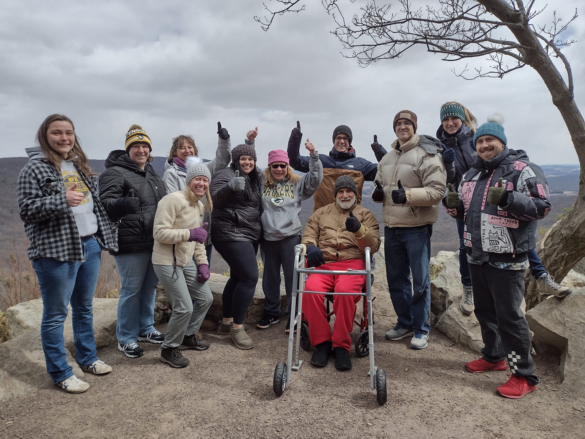 At the South Lookout, Ross insisted that therapists pose for a photograph with Gladfelter, who was seated on an Ice Age boulder overlooking farmland cultivated by Pennsylvania Dutch families for generations.