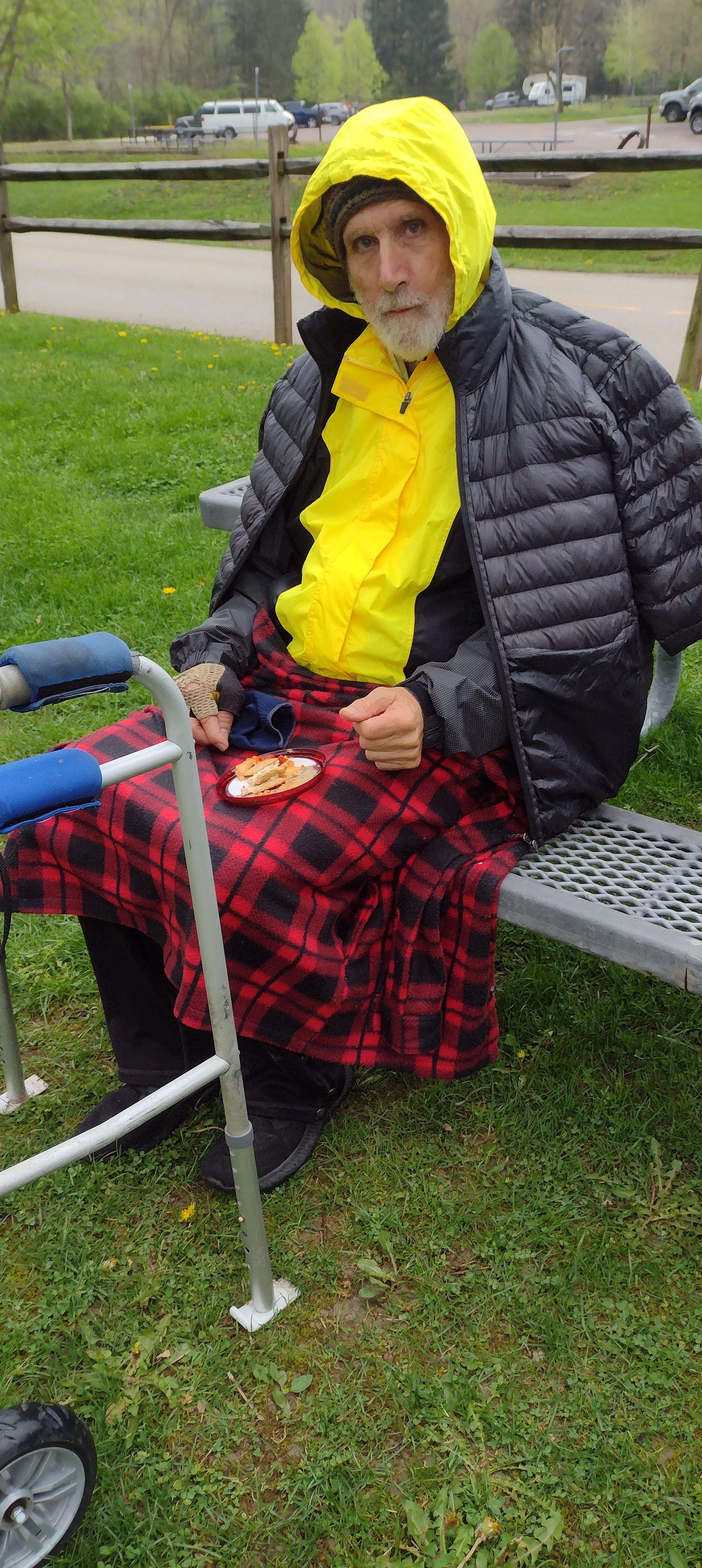 Our Team is doing great and helping so much! Leslie Krater and Beth Ellen Pennell are the two chefs and food organizers. Rod shuttles and meets us half way every day for lunch and to see if there are any troubles. Danny, our Army Ranger Veteran, is doing great too. Knees holding up well and he is there to help with Todd and stretches him every night. I can ask Dan or Walt Krater to help with Todd any time I need to do something. Walt helps me with the RV. And they all help to keep Todd’s spirits up which helps us all.