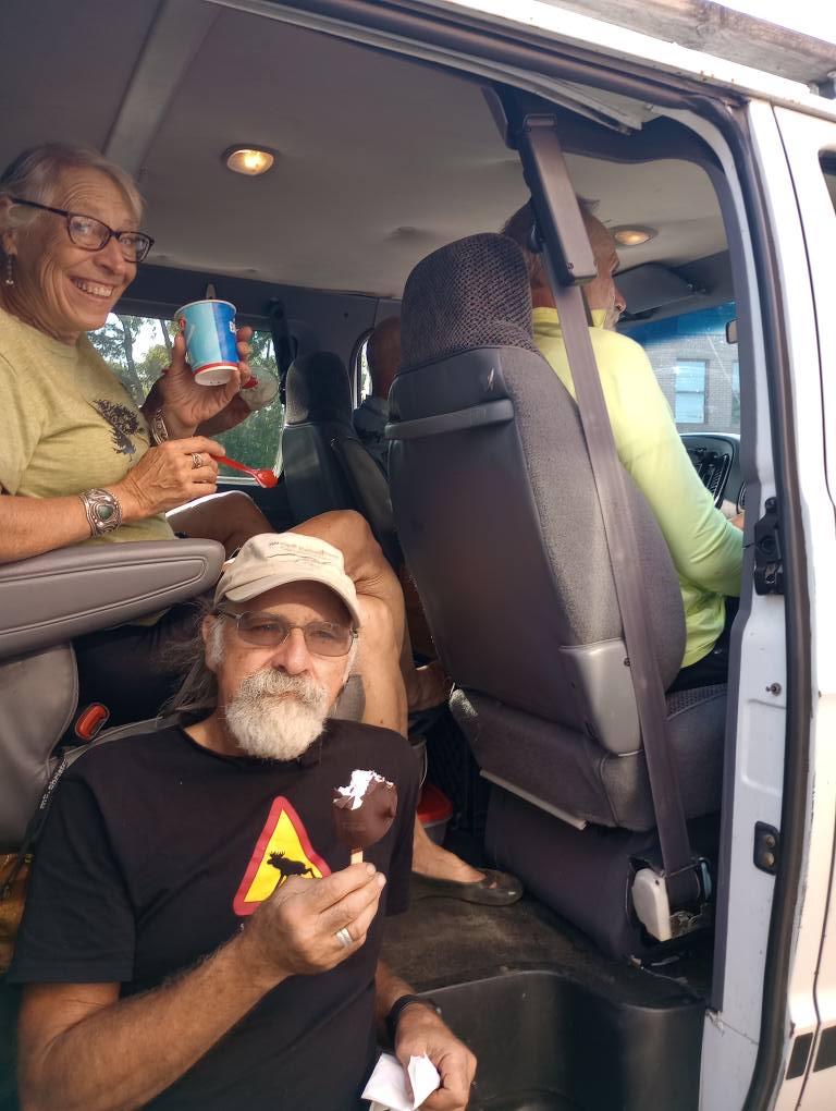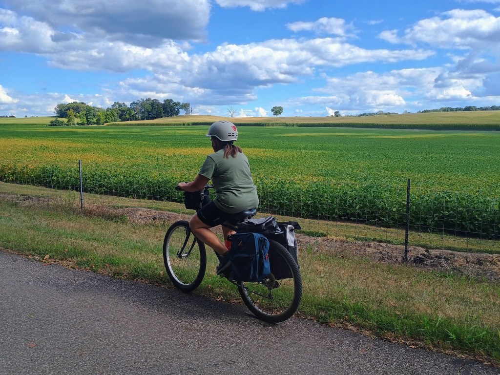 There are many gaps in the Great American Rail Trail (GART), especially in Indiana, and we rode individual trails like the Erie to Ohio Trail, the Sweetster Trail, the Cardinal Greenway and the Nickel Plate Trail. Each trail had its own personality. Some were more developed with ports Jons and mileage signs (or rocks) every half mile and picnic pavilions; some had nothing. There were not many towns, this is Midwest farmland at its best, so not many accommodations. We had to shuttle very far every day to get to our state park campgrounds, so that squelched our hopes for doing big days on the blacktop trail. We did manage to locate ice cream at the end of every day, however, usually a Dairy Queen, which we all enjoyed.